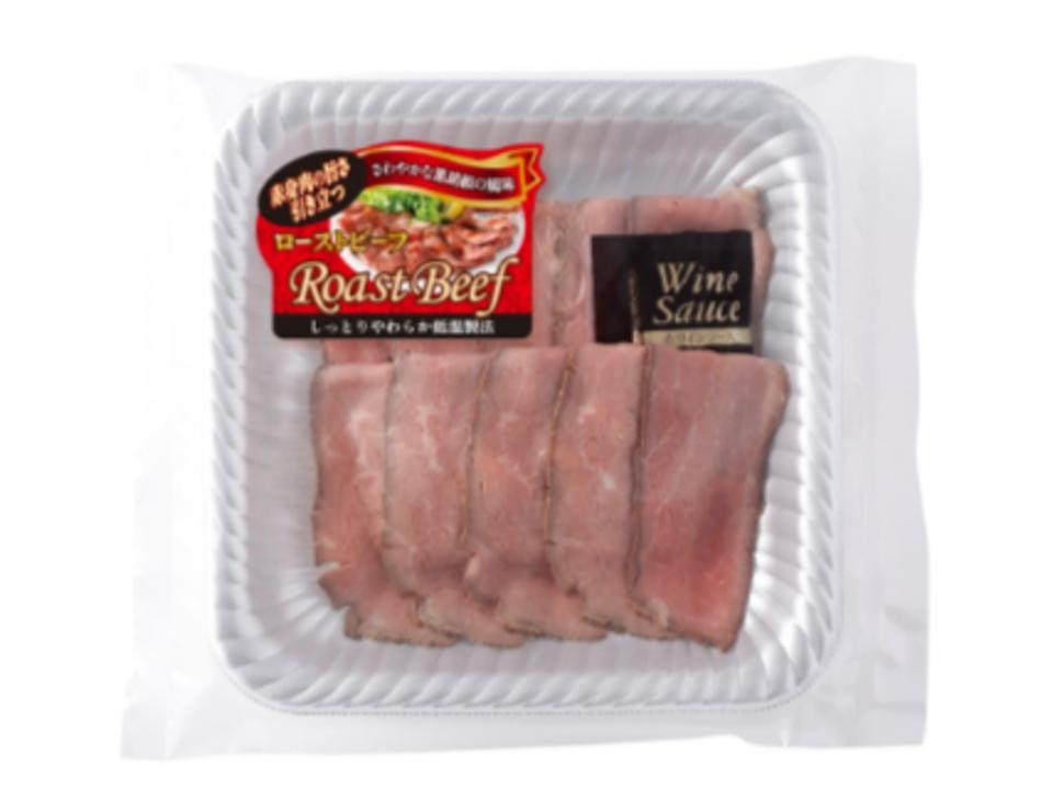| ローストビーフ【牛肉(輸入)、食塩、ぶどう糖、黒こしょう、白こしょう、(一部に牛肉を含む)】、添付ソース【水あめ(国内製造)、しょうゆ、還元水あめ、赤ワイン、食塩、デミグラスソース、醸造酢、フライドオニオンパウダー、ローストオニオンペースト、大豆油、酵母エキス、こしょう/カラメル色素、酒精、調味料(アミノ酸等)、増粘剤(キサンタン)、(一部に小麦・大豆・豚肉を含む)】 |