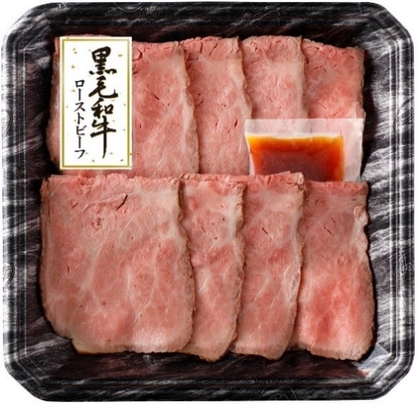 | ローストビーフ【牛肉(国産黒毛和牛)、食塩、ぶどう糖、香辛料、(一部に牛肉を含む)】、添付ソース【しょうゆ(国内製造)、発酵調味料、砂糖、醸造酢、食用植物油脂、食塩、乾燥たまねぎ、濃縮りんご果汁、酵母エキス、オニオンエキス、おろしにんにく、おろし生姜、濃縮レモン果汁/調味料(アミノ酸等)、増粘剤(キサンタン)、ビタミンB1、酸味料、(一部に小麦・大豆・りんごを含む)】 |