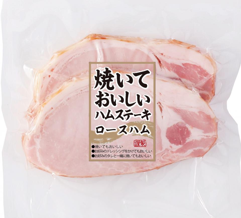 国産豚のロース肉を使用したロースハムのブロックを厚めにスライスしました。