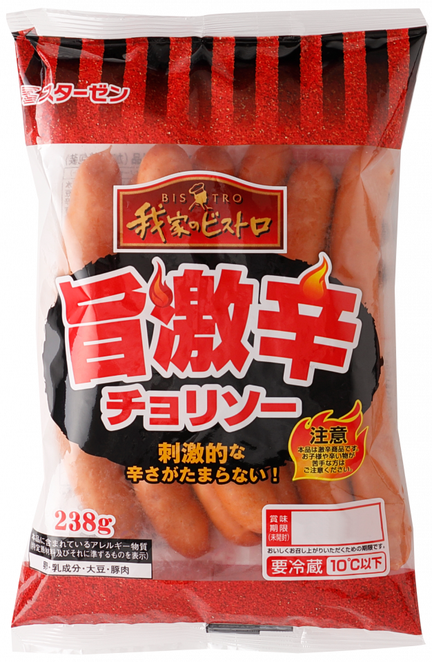天然羊腸を使用したパリッとした歯ごたえと刺激的な辛さが特徴的な激辛ウインナーです。