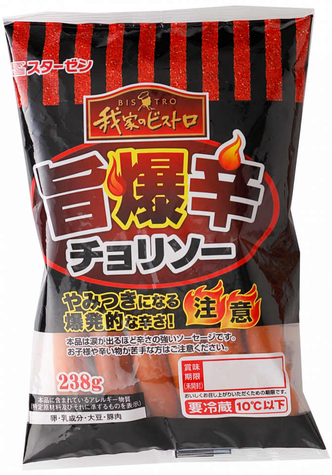 天然羊腸を使用した、パリッとした歯ごたえと爆発的な辛さが特徴的なチョリソーです。